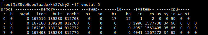 vmstat 是一个常用的系统性能分析工具,主要用来分析系统的内存使用情况,也常用来分析 CPU 上下文切换和中断的次数。