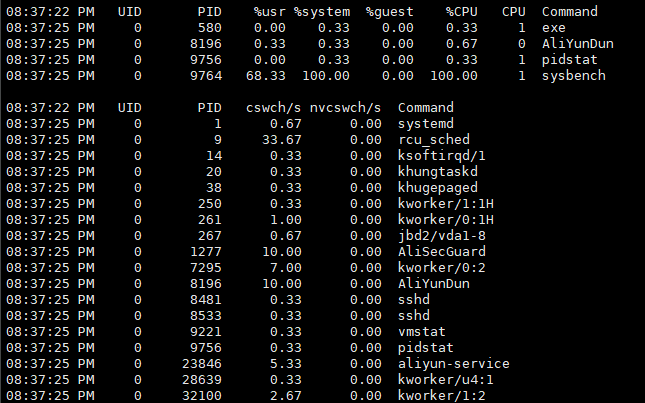 比如之前的天池比赛,如果用pidstat观察的话: