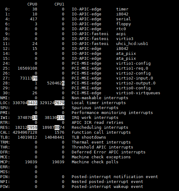 2 $ watch -d cat /proc/interrupts